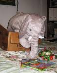 Thursday (Christmas Day) I had to break open my stash of emergency birdseed, and let tell you, it was NOT greeted with enthusiasm. We have two feeders on the hook closest to the house, and the squirrels frequently get the square one spinning, so it comes unscrewed and falls on the ground. I just left it there and filled it with the seed. Rather than eat from the tray at the bottom, the squirrels stood on their hind legs and reached down into the feeder, looking for something fit to eat. One enterprising fellow finally climbed into the feeder and was digging around, wildly throwing seed into the air, all willy-nilly.